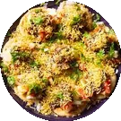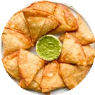 Choice of sauce, fresh mozzarella cheese with choice of crushed samosa, chick peas, onions, green & red chutney and topped with fine sev