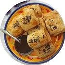 Crispy rice puffed with onions, potatoes, coriander & chutney.