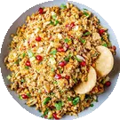 (A vegetable medley sautéed with spices cooked with long grain basmati rice & topped with grilled onions, ginger and lime)