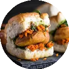 (A deep fried potato dumpling placed inside a bread bun sliced in half)