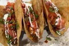 (DICED CHICKEN TIKKA LAYERED WITH SLICED ONION, A SQUIRT OF LIME AND TOPPED WITH GREEN CHUTNEY AND A SHAKE OF CHAAT MASALA, WRAPPED IN WARM PARATHA) (3 TACOS)