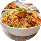 (Seasoned minced chicken cooked in a traditional oven, sautéed in spices, layered in long grain basmati rice & topped with grilled onions, ginger and lime)