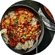 (Chicken curry simmered in an aromatic, slightly sweet curry sauce thickened with Greek yogurt)